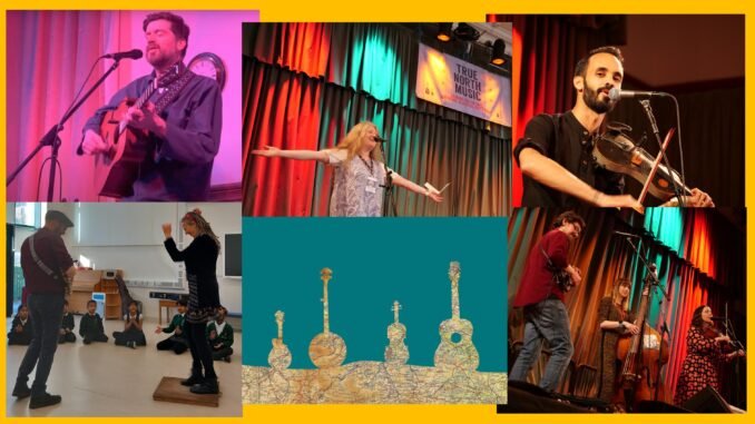 In December I wrapped up True North Music’s 2023-24 local live music series, which was the most amazing cornucopia of folk-roots, bluegrass and Americana., featuring some of the finest roots artists from the UK, USA and Canada, including Jaywalkers, Gangstagrass, the Jake Blount trio, Mishra, Kris Drever, Golden Shoals and Evie Ladin & Sophie Wellington, just to name a few. We hosted ticketed workshops in fiddle, banjo, body percussion, harmony singing and Appalachian flatfooting, and delivered warmly received school workshops in fiddle, ukulele, body percussion, singing and tabla language! Our Huddersfield-area concerts and festival took place at delightful community venues The Carlile Institute (in Meltham) and Marsden Mechanics. Check out the video highlights reel above! I also want to add my appreciation to series sponsor Dark Woods Coffee and event sponsors Eagle Music Shop and the British Bluegrass Music Association for their contributions. Most of all, I’d like to acknowledge the vital support from Arts Council England, whose Project Grants funding made it possible for me to deliver such an excellent programme of events and guarantee decent fees for artists, alongside the ticket income (which was also absolutely essential).